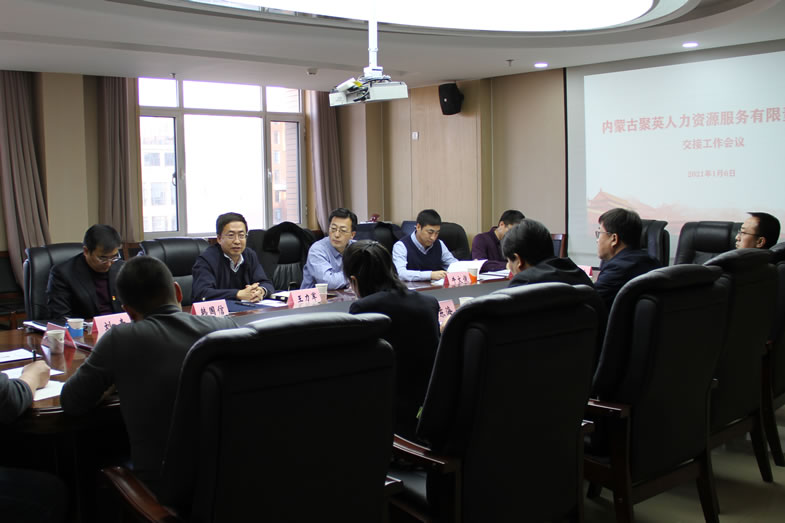 1月6日,在自治区国资委的大力支持下,米兰官网,米兰(中国)一站式服务官网与自治区人力资源公共服务中心召开内蒙古聚英人力资源服务有限责任公司交接工作会议。自治区国资委资本运营与收益管理处处长张世宏、自治区人力资源公共服务中心主任谢遵国、国资运营公司党总支书记、董事长王力军出席会议并讲话,自治区人力资源公共服务中心、国资运营公司、聚英人力资源公司相关人员参加会议,会议由国资运营公司总经理牛文俊主持。