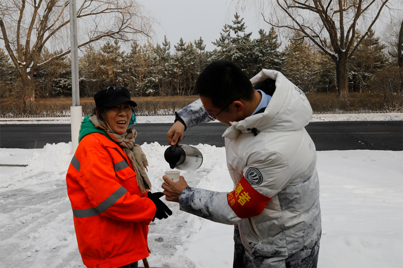 2月9日,2023年的初雪悄然而至,雪中的青城银装素裹,寒意阵阵。国资运营公司第一、二党支部联合开展支部共建,为附近清理积雪的环卫工人、维护秩序的交通警察送上春天的第一杯奶茶,让这个春天多了一份暖意。